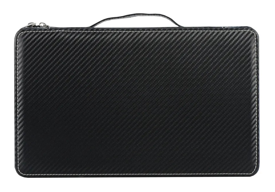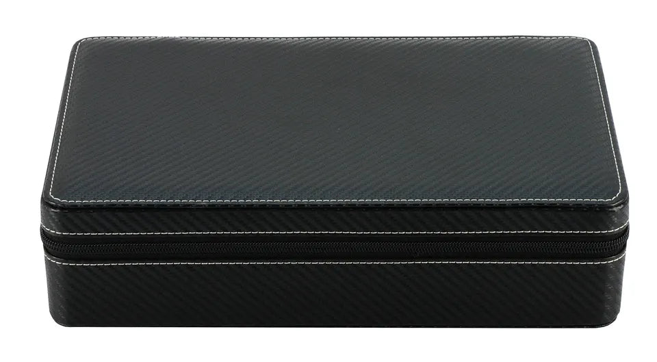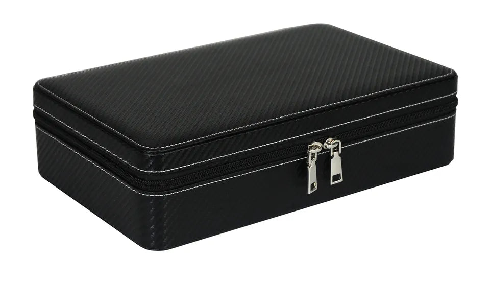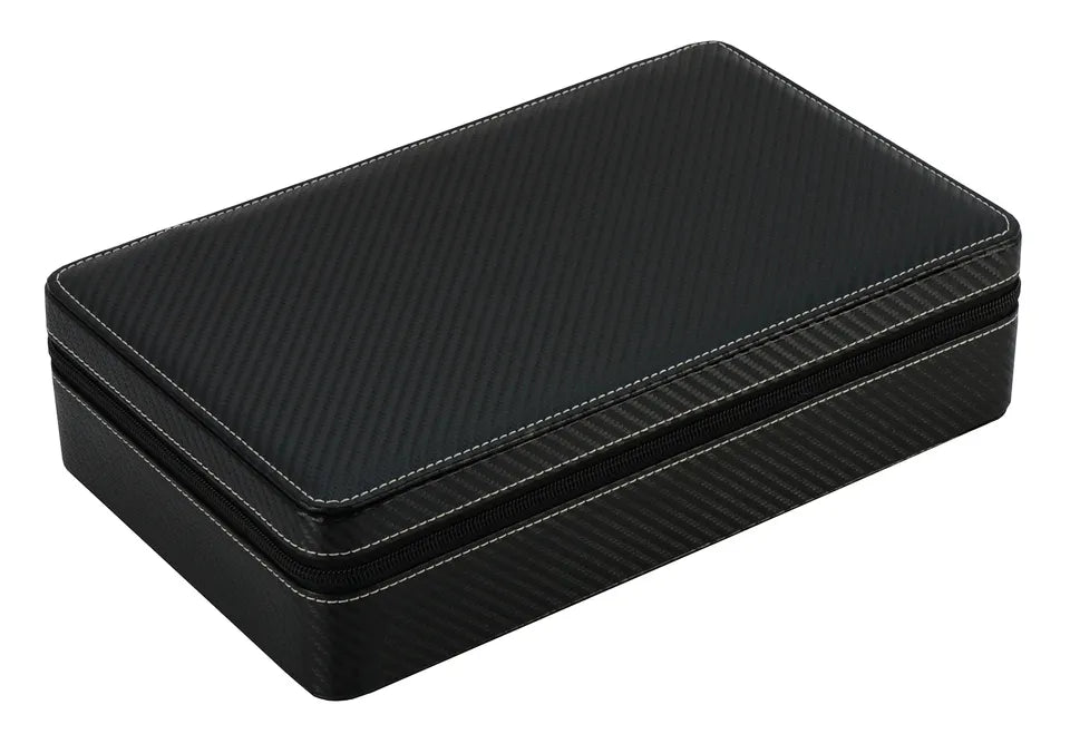 Tu colección de relojes es una inversión en tu estilo personal. Protégela y mantenla organizada con la elegancia que se merece. Este estuche de viaje está diseñado para ser el guardián de tus piezas más preciadas, ya sea en casa o en movimiento. Su exterior rígido con una moderna textura de fibra de carbono y su interior de terciopelo suave aseguran que cada reloj esté a salvo de golpes, rayones y polvo, siempre listo para la próxima ocasión.