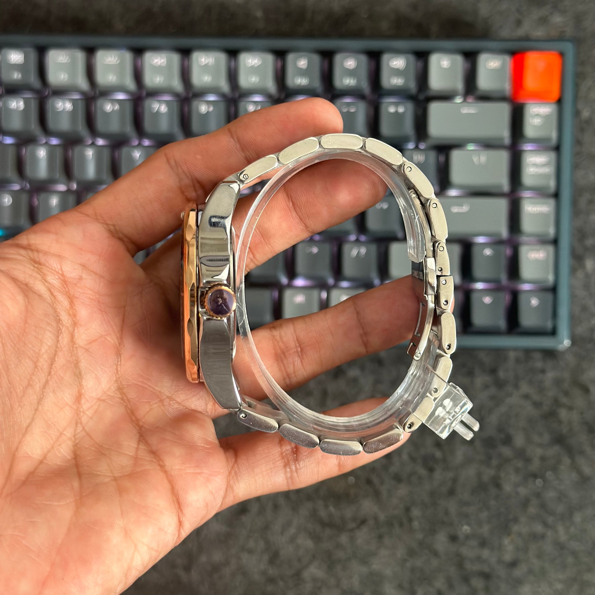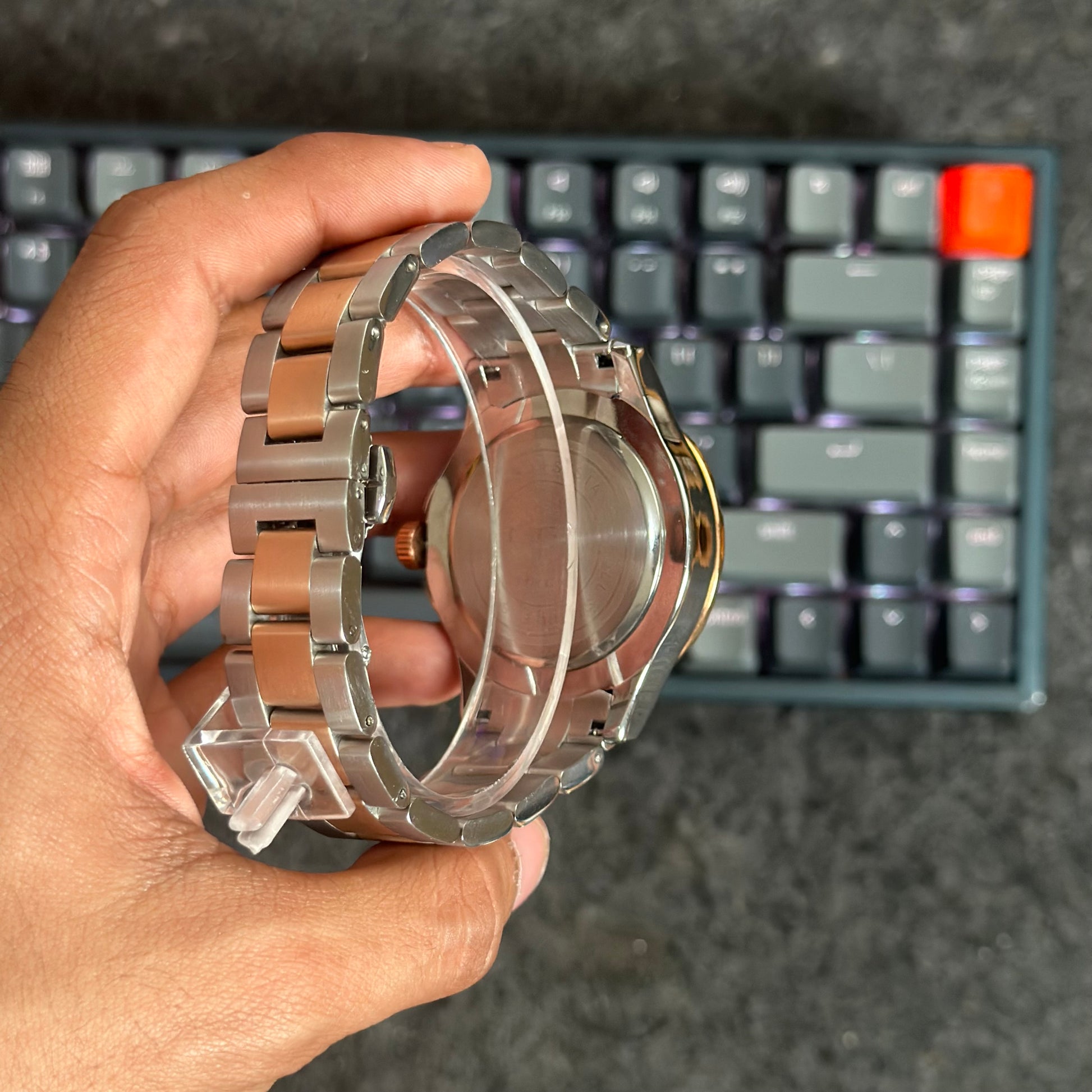 ✓ Diseño Bicolor Impactante: La elegante mezcla de acero y tonos oro rosa le da una versatilidad única, fácil de combinar y garantizado para elevar cualquier atuendo.