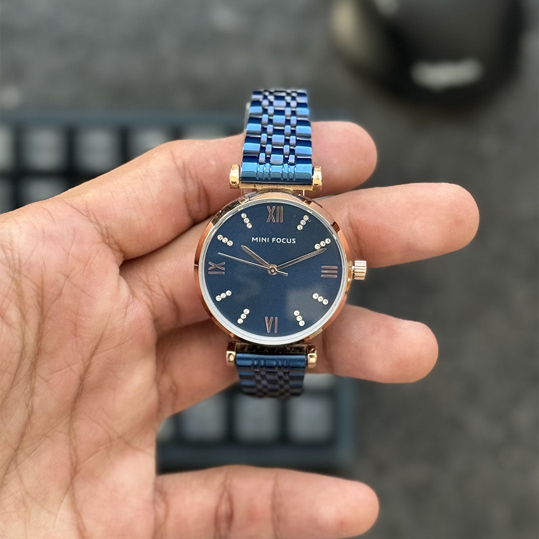 La elegancia se reinventa con un toque de color audaz. El Reloj Mini Focus MF0335L es una pieza de diseño excepcional, creada para la mujer moderna que no teme expresar su estilo. La impactante combinación del profundo azul del brazalete con la cálida tonalidad oro rosa de la caja crea un contraste único y sofisticado. Con sus brillantes marcadores y elegantes números romanos, este reloj es el accesorio perfecto para destacar con clase y originalidad.