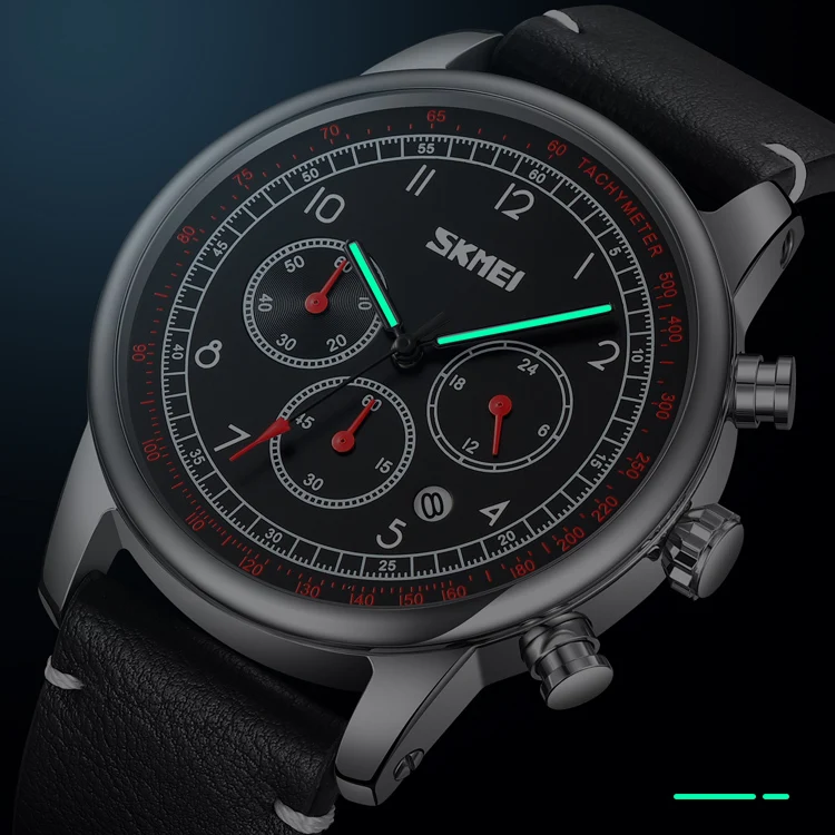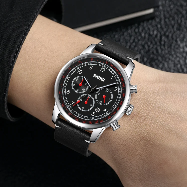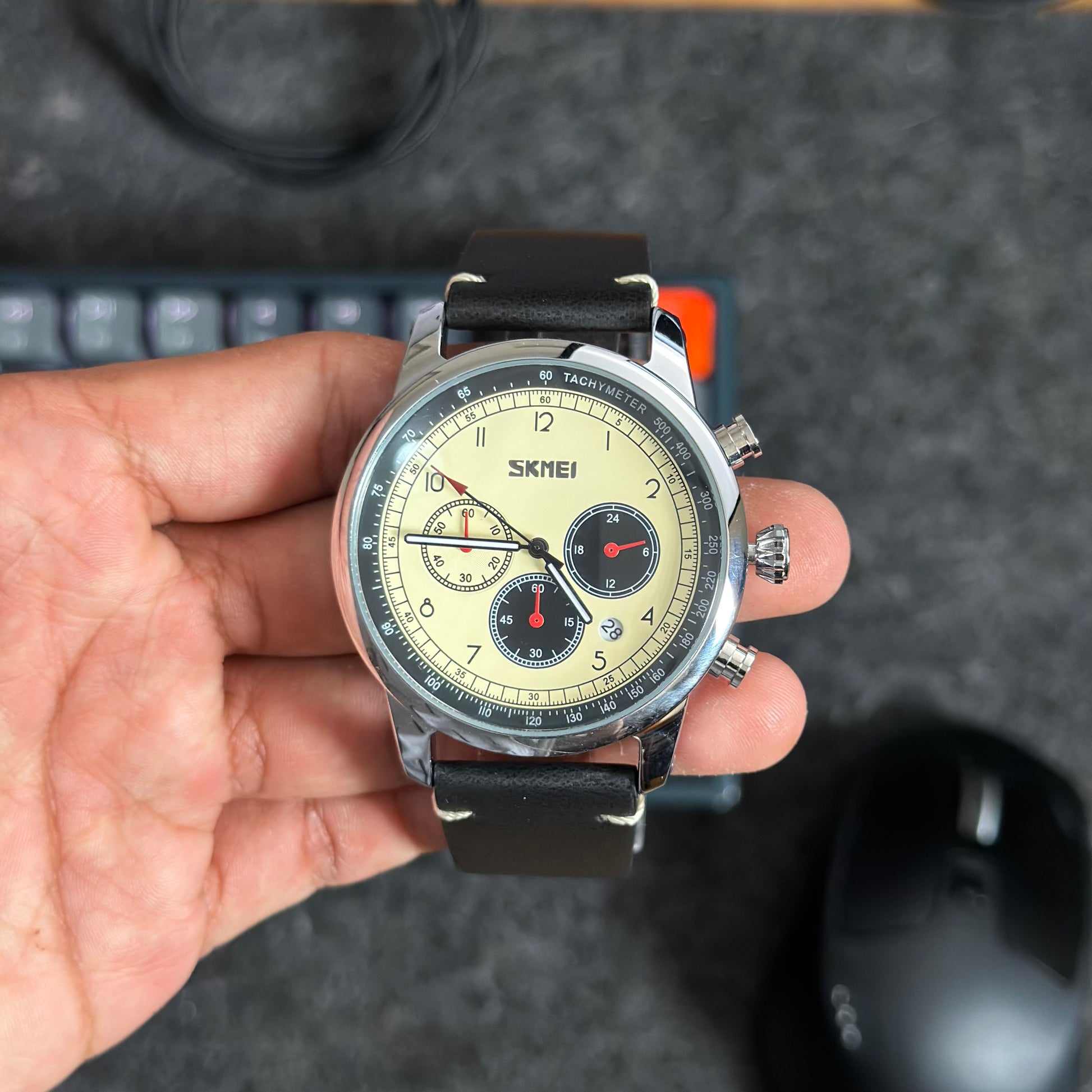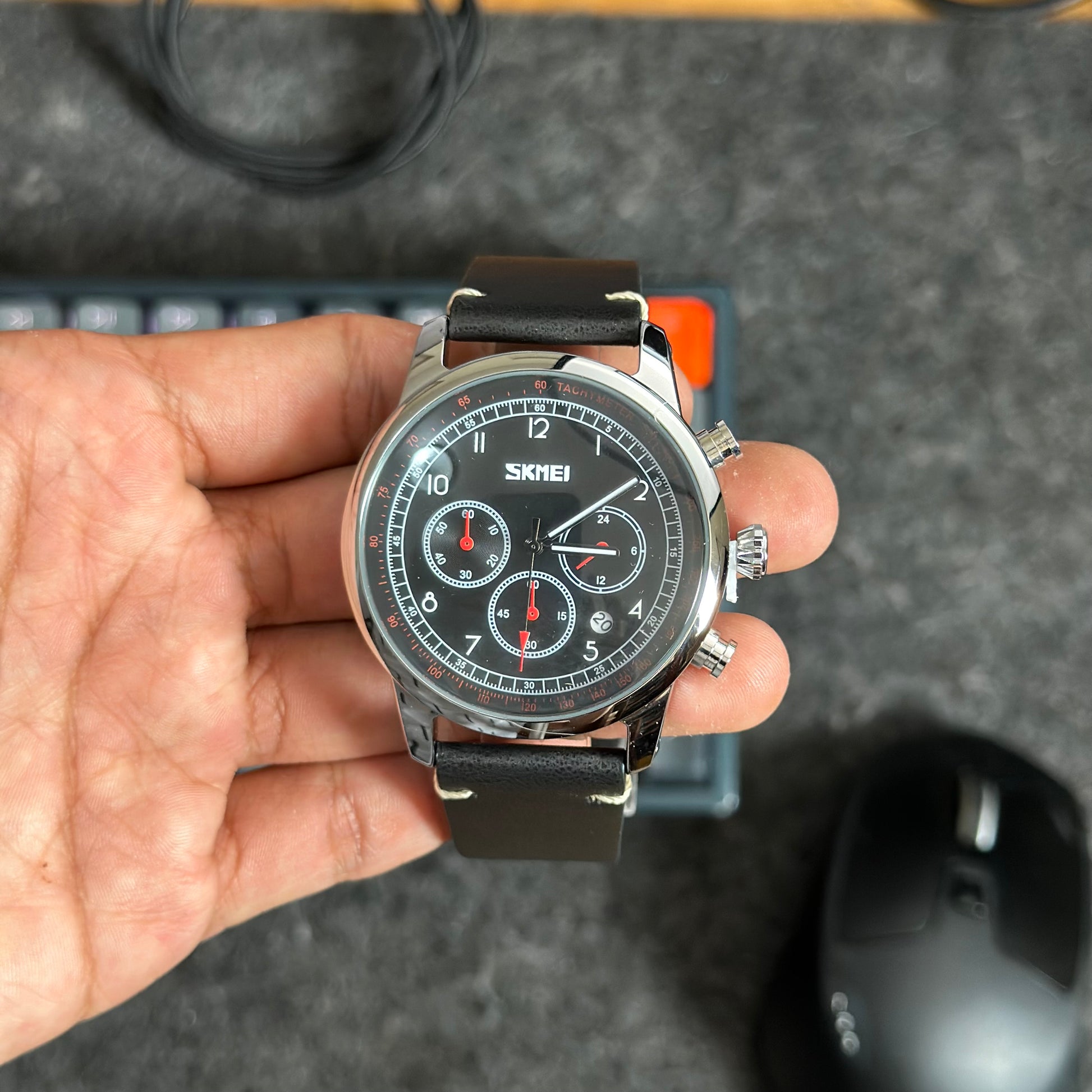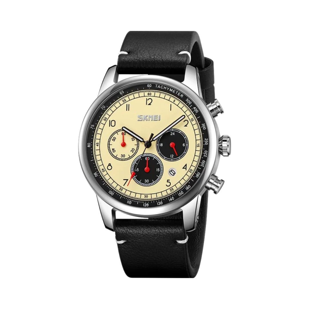 Para el hombre que valora el tiempo y el estilo, presentamos el Reloj Skmei 9318. Una pieza que combina la inspiración de los cronógrafos de carreras vintage con la elegancia de un reloj de vestir clásico, creando un accesorio increíblemente versátil.